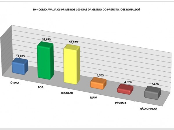 Quando questionados diretamente sobre a aprovação da gestão de José Ronaldo, 70,67% dos entrevistados responderam que aprovam, enquanto 15,83% disseram desaprovar. Outros 13,50% preferiram não opinar.