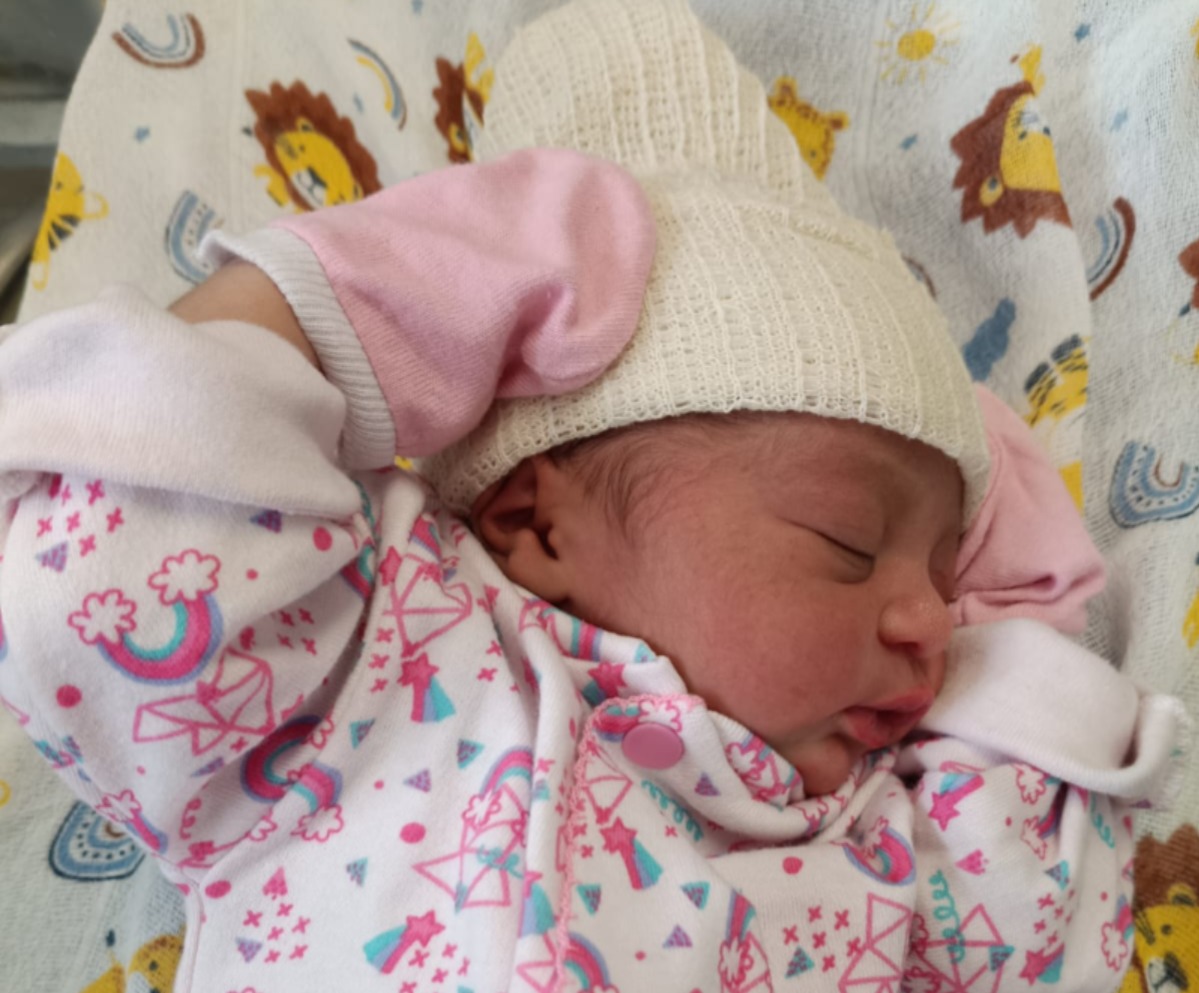 Primeira filha de Tainara de Souza Santos, Indianara Santos nasceu às 13h08, de parto normal, medindo 45 centímetros e pesando 2,5 quilos. Após o nascimento, a recém-nascida passou pelos cuidados iniciais e avaliação médica e deverá receber, nas próximas horas, as vacinas BCG, que protege contra a tuberculose, e hepatite B.